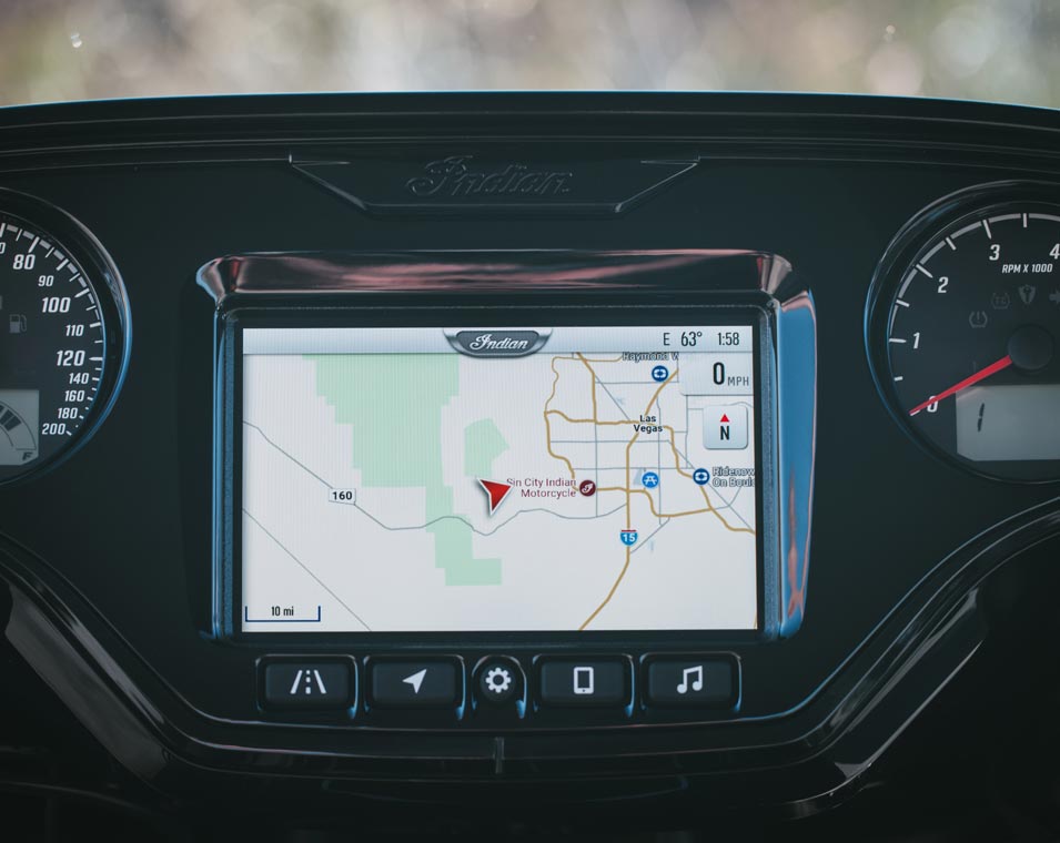 Ride Command® Apple CarPlay®、Bluetooth®接続、設定可能なゲージ、走行統計情報など表示可能な7インチディスプレイを搭載。