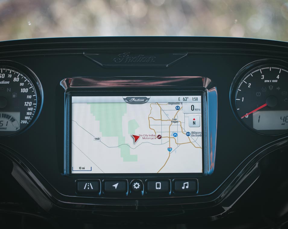 Ride Command® Apple CarPlay®、Bluetooth®接続、設定可能なゲージ、走行統計情報など表示可能な7インチディスプレイを搭載。